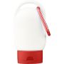 Sunscreen lotion with SPF30 in a 30 ml tube. Features a colored cap and matching carabiner for easy attachment. Backside includes ingredient list and best-before date. Shelf life of 2 years.