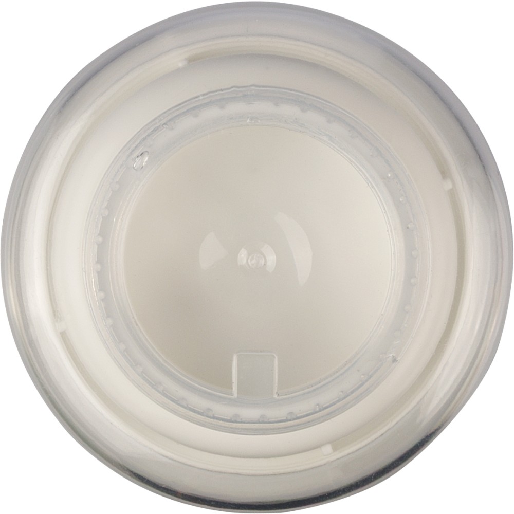 AS colored transparent jar with 12 g lip balm. The lip balm matches the color and is available in four flavors: vanilla (21), strawberry (08), orange (07) and blueberry (24).