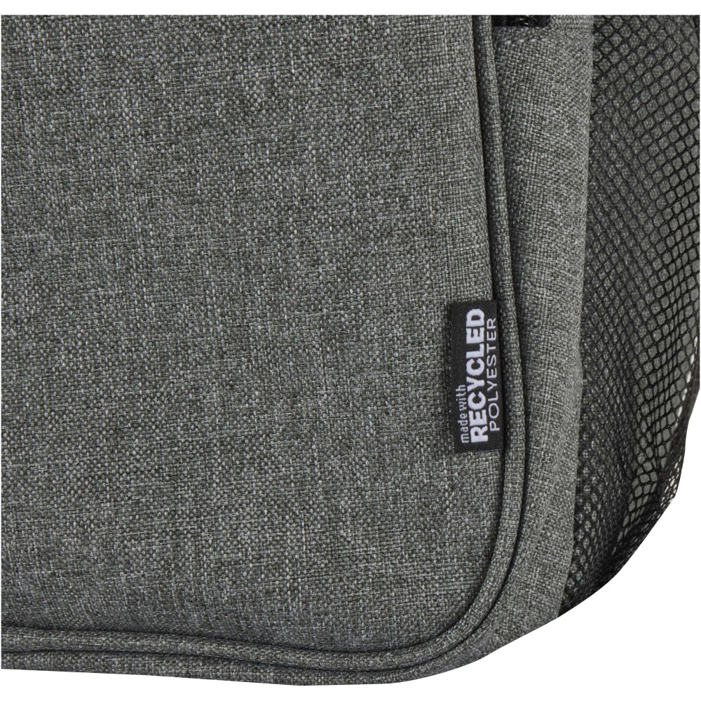 The Tundra picnic cooler backpack is made from GRS certified recycled materials and comes with a reusable two-person cutlery set made from food-grade plastic. Its leak-proof main compartment, insulated with high-density foam and a heat-sealed PEVA lining, keeps food and drinks chilled for hours. For added convenience, it includes two side mesh pockets, a zipped front pocket with tableware (two knives, two forks, two cups, and two plates), and an extra zipped pocket on top. Padded adjustable shoulder straps and a sturdy webbing handle make it comfortable to carry, making this backpack an ideal companion for picnics, outdoor dining, camping, or beach trips. Volume capacity: 20 litres.