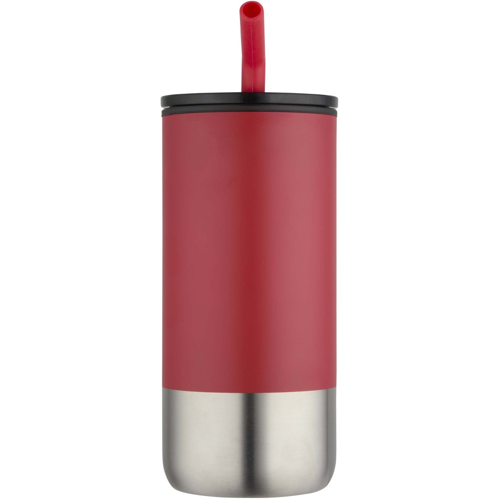Featuring a double-walled insulated design, this tumbler comes with a recycled stainless steel straw topped with a silicone tip for comfortable use. The inner wall is made from PP plastic, while the outer wall is crafted from RCS-certified recycled stainless steel. A sliding lid made from PS and ABS plastic, combined with a matte coating, gives the tumbler a sleek finish. Volume capacity: 480 ml.