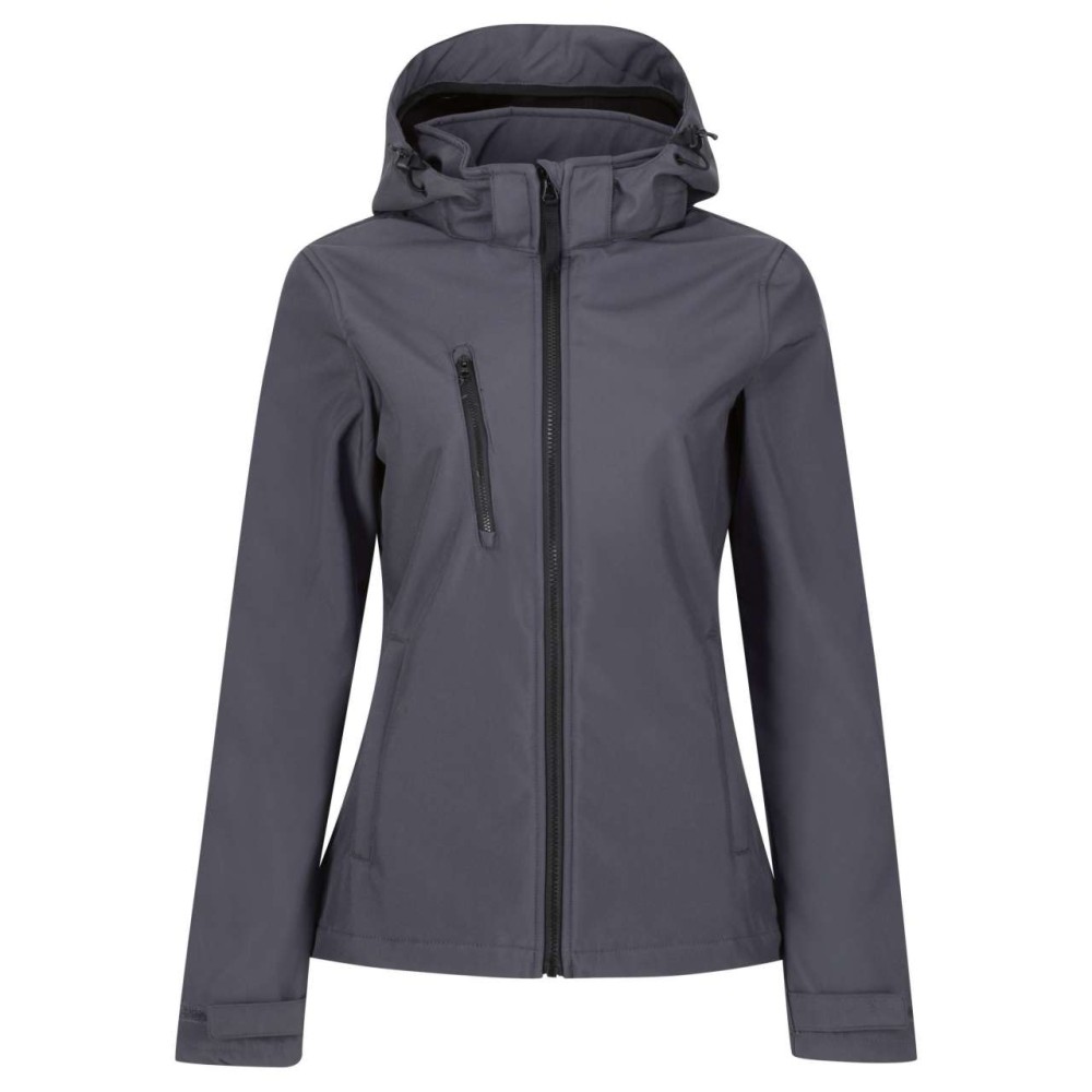 WOMEN'S VENTURER 3 LAYER HOODED PRINTABLE SOFTSHELL JACKET, Seal Grey/Black