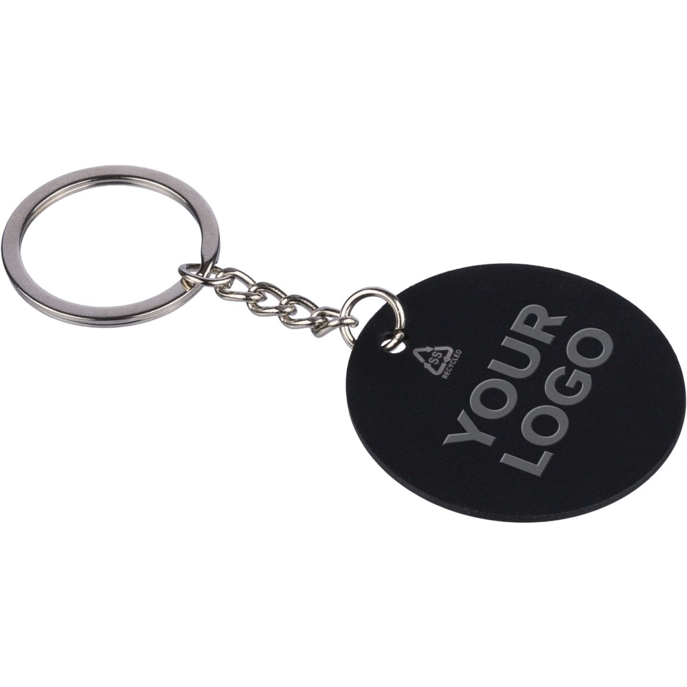 Recycled stainless steel round keychain Risa, black