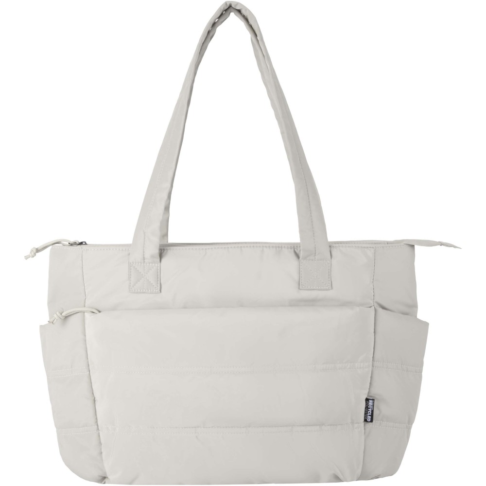The Puffer 15.6" laptop tote bag combines GRS certified recycled materials with a smart and modern design. With an 18-litre capacity, it includes a padded sleeve for laptops up to 15.6" and multiple interior and exterior pockets to hold notebooks, chargers, water bottles, and other essentials. Long padded handles and a trolley strap ensure comfortable carrying, while the puffer-style padding provides both protection and a sleek appearance. Lightweight and water-repellent, this tote bag is an ideal choice for professionals and students on the move.