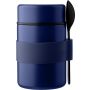 Stainless steel double-walled lunch pot (460 ml) including black PP spoon and silicone grip in matching color of the pot. Inside stainless steel 304 and outside stainless steel 201. It comes with a PP lid. Packaged per piece in a brown carton box.