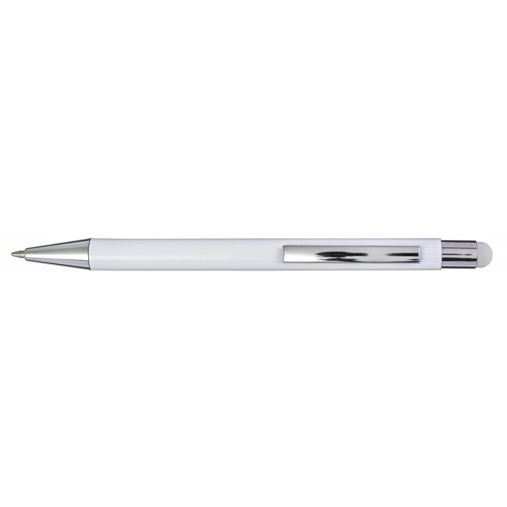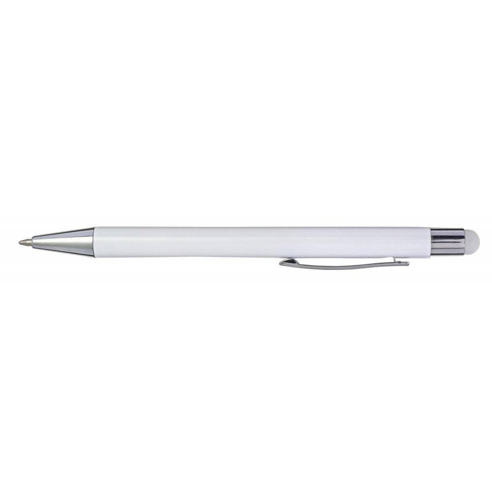 Aluminium and ABS ballpen with rubber tip for capacitive screens. When the pen is lasered, the imprint will show in colour. Blue ink.