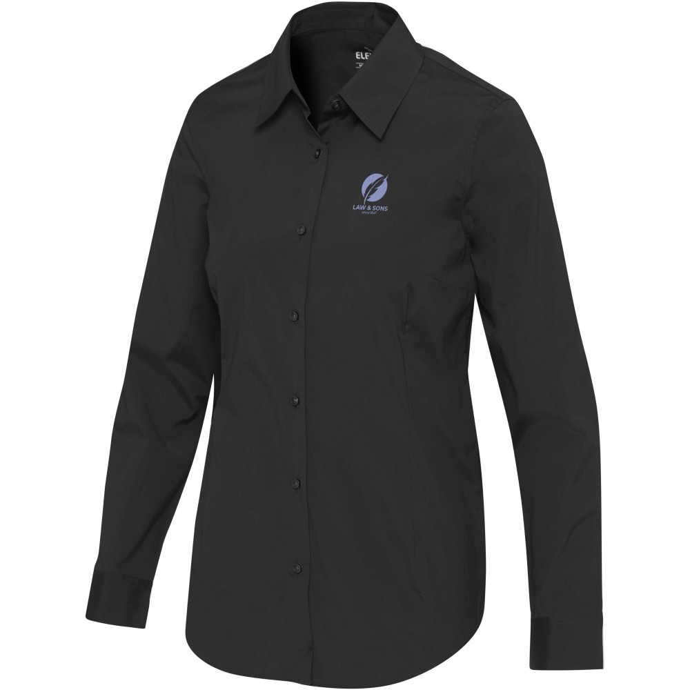 The Carnelian long sleeve women?s poplin shirt offers polished style with a flexible, feminine fit. Crafted from premium BCI-certified cotton with added stretch, the finely woven 30-denier two-ply twisted yarn structure provides a soft, high-quality finish and long-lasting shape. Designed in a regular fit with shaping darts at the front and back, it offers a flattering silhouette and all-day comfort. Finished with a timeless regular collar, the Carnelian shirt blends elegance and performance?making it a refined essential for everyday wear.