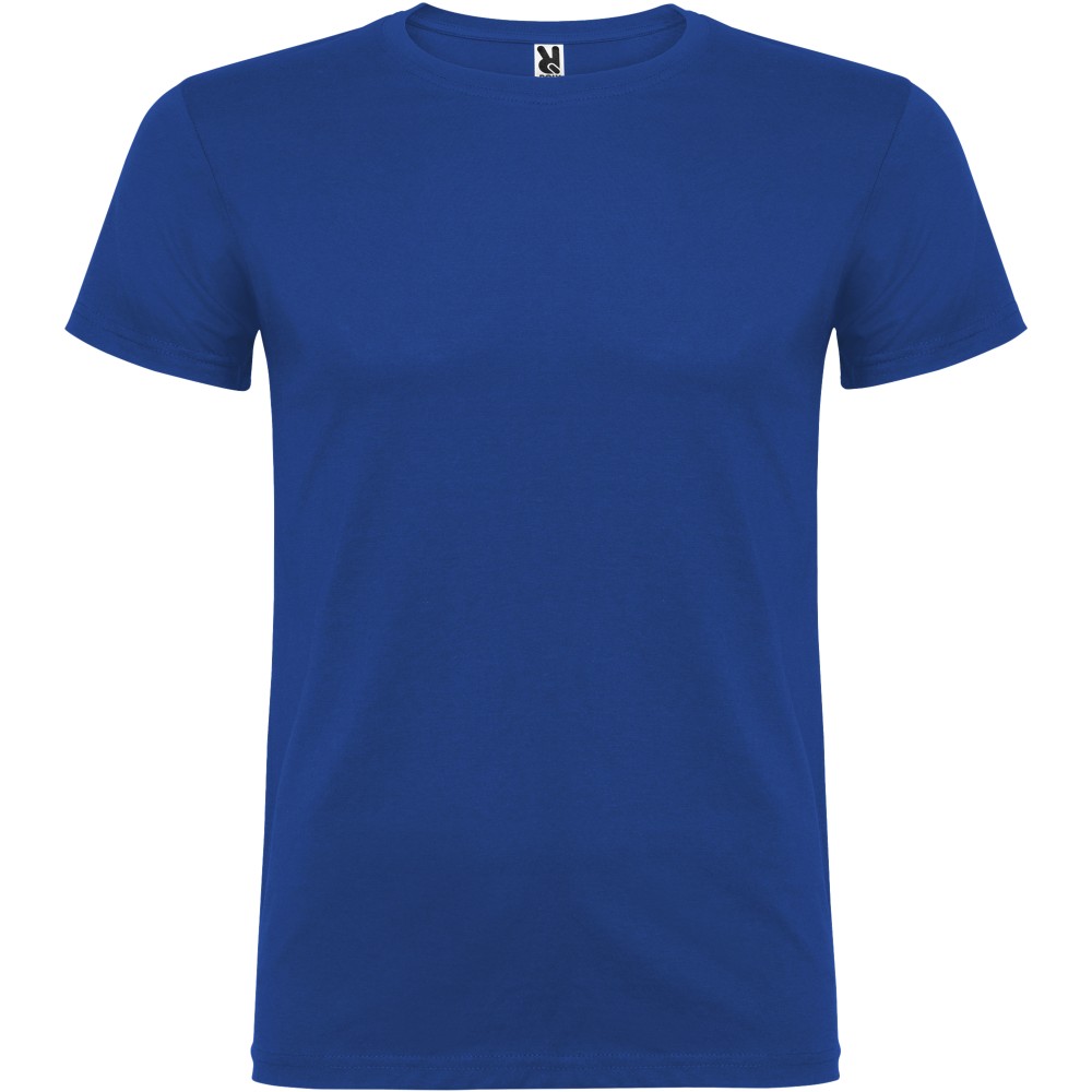 Short-sleeve t-shirt with double layer crew neck in elastane, made in tubular fabric for adults. Reinforced covered seams in collar. Removable label. The model is 190 cm and is wearing size L. Single Jersey knit of 100% Cotton, 155 g/m2.