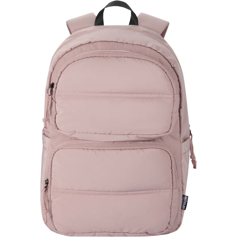 Soft, lightweight, and designed for modern life, the Puffer 15.6" laptop backpack combines premium GRS certified recycled materials with practical features for everyday use. Its water-repellent 18-litre design includes a padded main compartment for laptops up to 15.6", along with multiple external pockets to keep essentials organised. A breathable mesh back and trolley strap provide comfort and convenience when travelling, while the signature puffer-style padding offers both a sleek look and extra protection for your belongings. Ideal for commuting, school, or travel.
