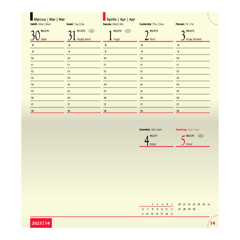 Bolero P Zsebnaptár - fekvő, világoszöld