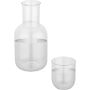 A sleek 850 ml glass carafe with a matching 200 ml glass cup. Perfect for serving water, juice, or other drinks. Elegant and compact, this set looks beautiful on a dining table or desk. Made from high-quality glass for clarity and durability.