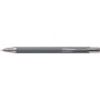 Recycled aluminium rubberized ballpen with matching UV-coated plastic and metal details. Shiny mirror effect appears after engraving. Features engraved recycled logo and writes approx. 800 metres. Blue ink.