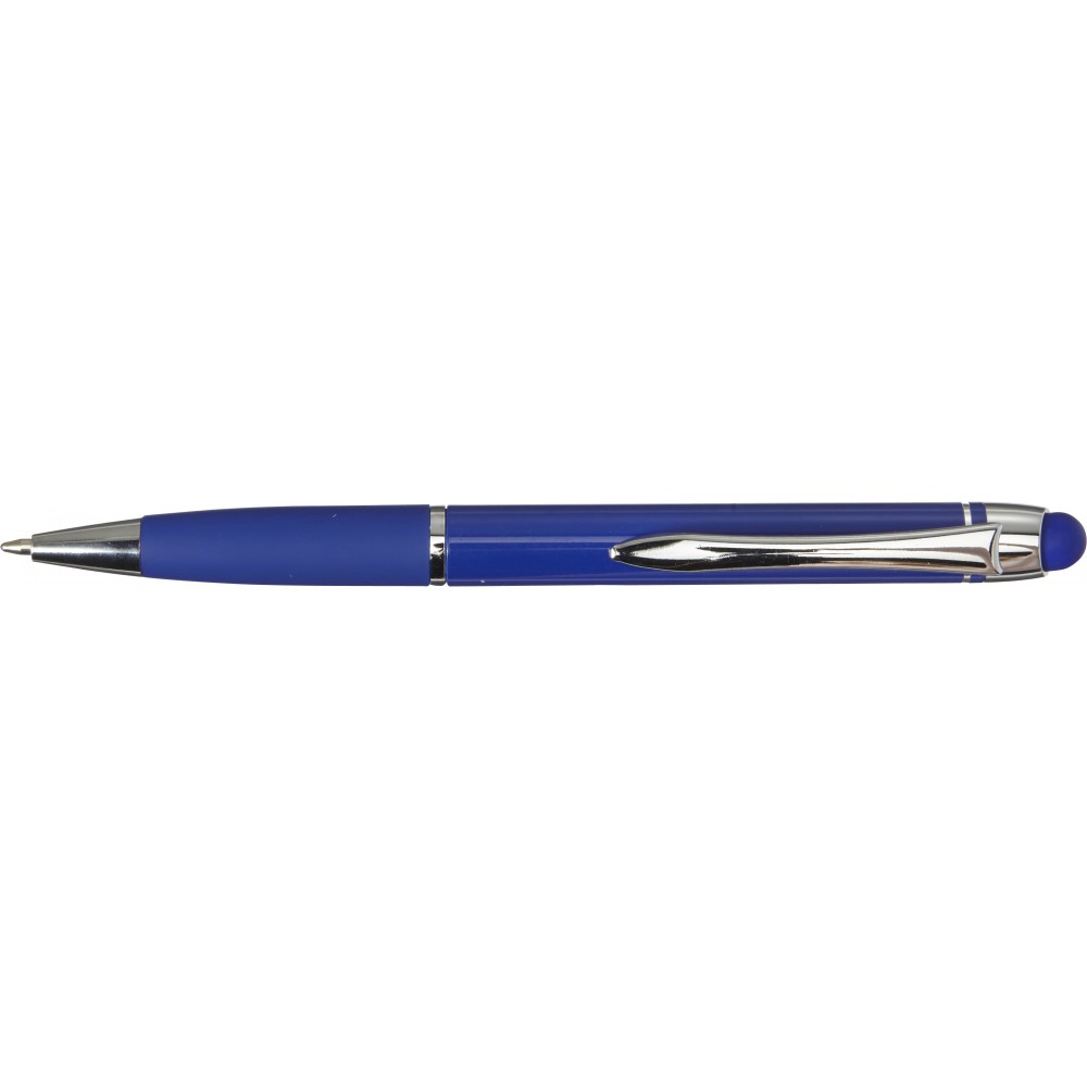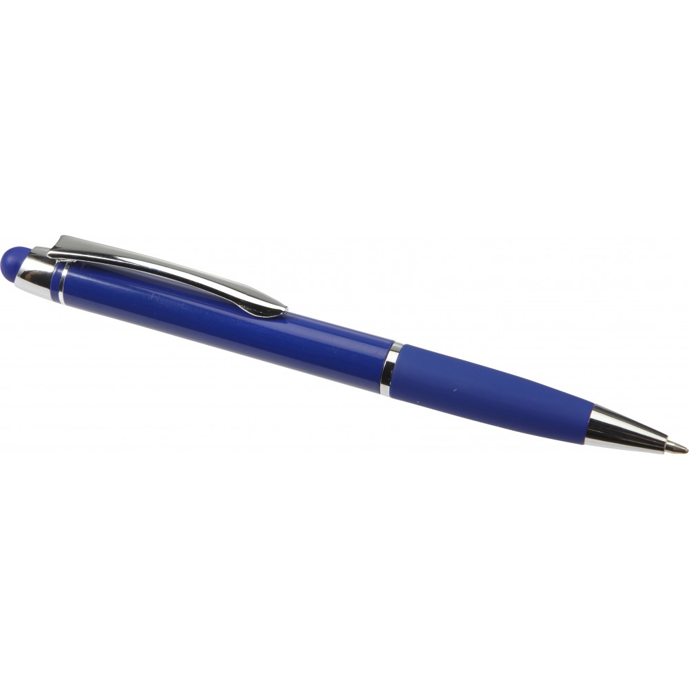 Shiny ballpen with matching coloured rubber grip, blue