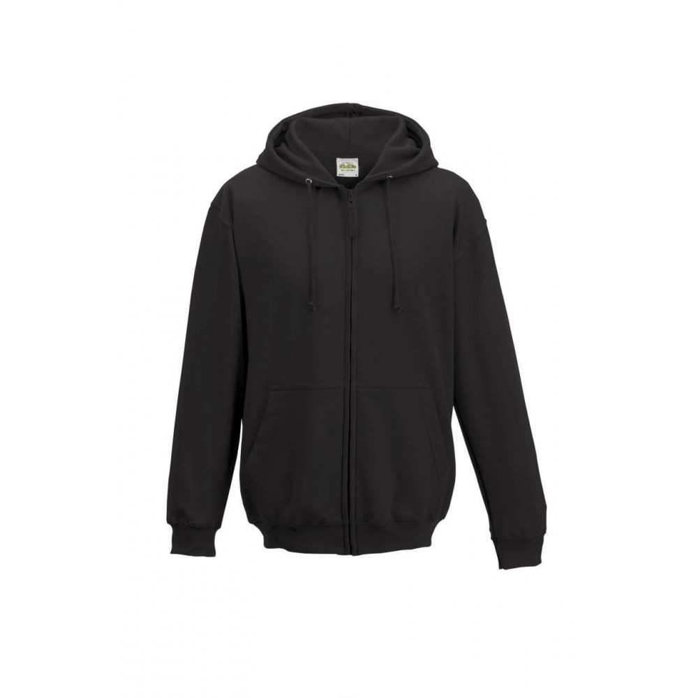 80% Ringspun Cotton/20% Polyester. Standard fit. Full zip hoodie. Self-fabric covered YKK zip. Double fabric hood. Round drawcords. Kangaroo pouch pockets. Brushed inner fleece. Ribbed cuffs and hem. Twin needle stitching detail. Tear away label. 100% cotton faced fabric.