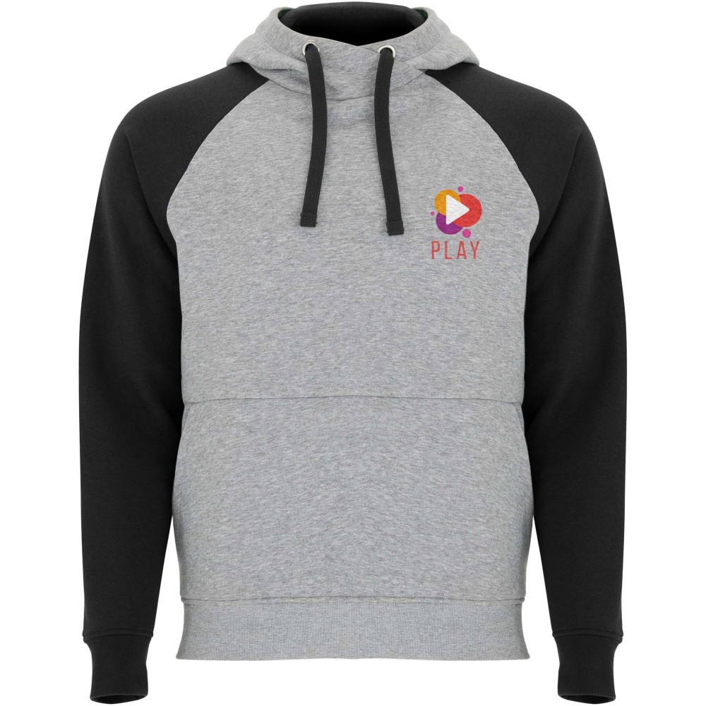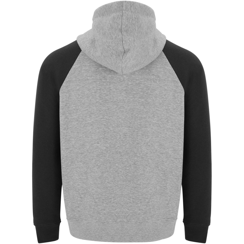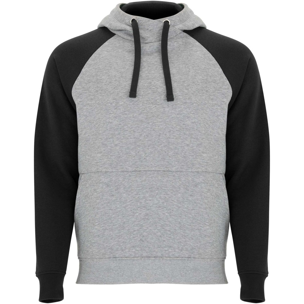 Two-colour unisex hoodie. Hood with crossed neck and metal eyelets. Contrasting inner hood, drawcord and raglan sleeves. Kangaroo pocket. Cuffs and hem in 1x1 elastane rib knit. Removable label.
