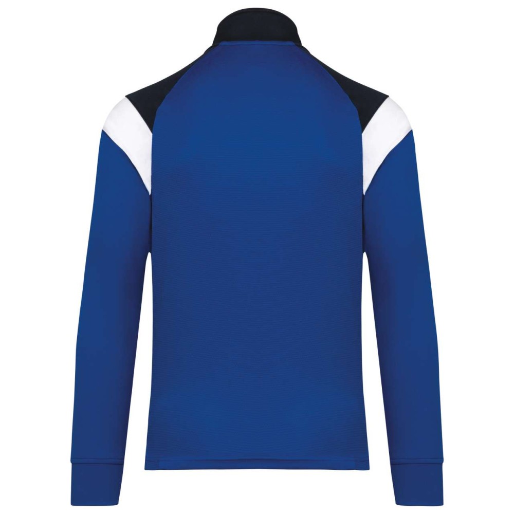 100% matte polyester interlock. Straight fit. Front fastening with reverse zip in tone-on-tone nylon. Raglan sleeves with contrasting shoulder inserts. Contrasting chest and shoulder cut-out. 2 zipped front pockets. Textured fabric inserts on the sides and back. Zip cover at the upper neckline for added comfort. Detachable brand label for easy decoration access.