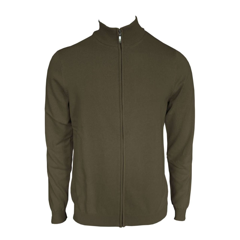 MEN?S FULL ZIP CARDIGAN FINE GAUGE COTTON, Dark Khaki