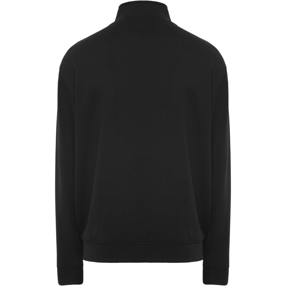 High collar sweater with matching zip. Matching inner collar with reinforced covered seams. 1x1 ribbed fabric in cuffs and waist. Removable label. The male model is 185 cm and is wearing size L, and the female model is 168 cm and is wearing size S.