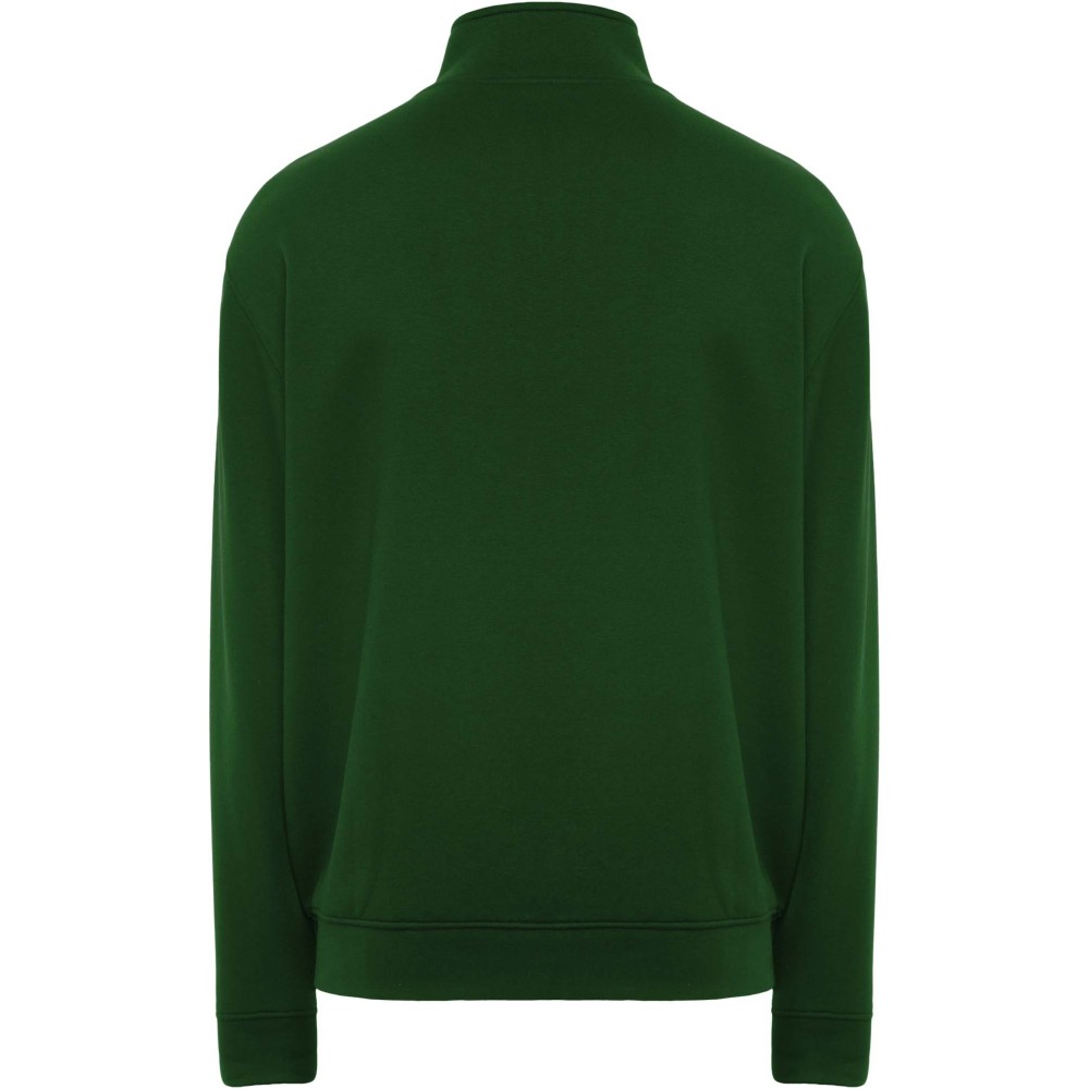 High collar sweater with matching zip. Matching inner collar with reinforced covered seams. 1x1 ribbed fabric in cuffs and waist. Removable label. The male model is 185 cm and is wearing size L, and the female model is 168 cm and is wearing size S.