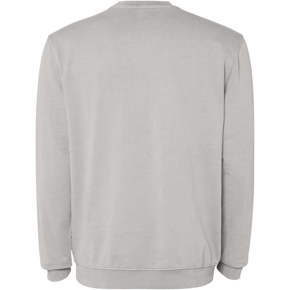 Unisex sweater with an acid-wash finish. 2x1 ribbed collar, cuffs and hem in tone. Reinforced seams at cuffs, hem, waistband and armholes. Tone-on-tone cover stitch at the neck.