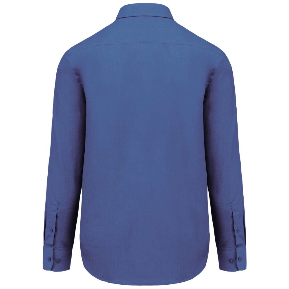 65% polyester / 35% cotton poplin. Easy-care fabric. Cut-away boned collar. Matching buttons. Rounded chest pocket on left side. Double back yoke. Felled seams. Adjustable rounded button cuffs with placket. 2 spare buttons. Certifié STANDARD 100 by OEKO-TEX® N° CQ1007/8, IFTH.