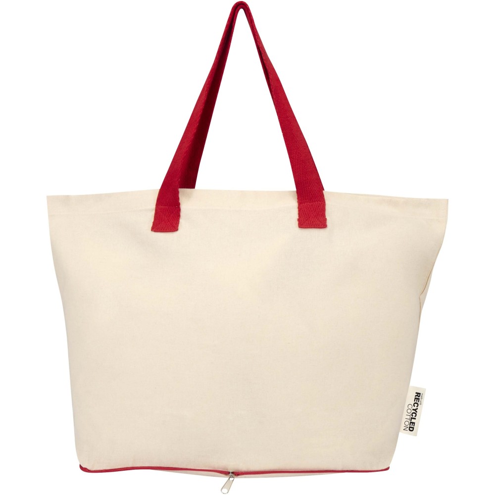 Lightweight and practical, the Sierra foldable tote bag is made from 100% GRS certified recycled cotton with a fabric density of 140 g/m2, offering a balance of flexibility and durability. It folds neatly into its own zippered pouch at the bottom, making it compact and easy to carry on the go. Ideal for shopping, errands, or travel, the bag holds up to 10 kg and features double handles for added support and comfort when carrying heavier loads. Volume capacity: 7 litres.