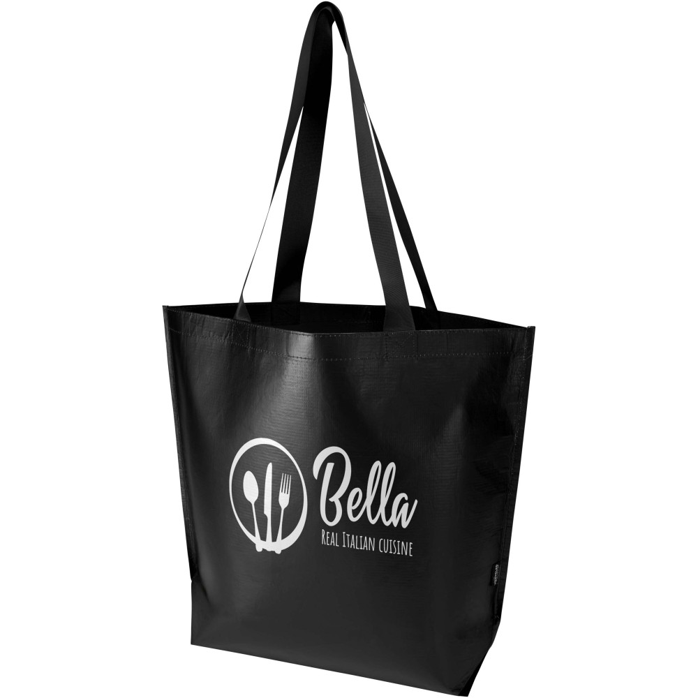 The Duo oversized double laminated bottom tote bag is made from 150 g/m2 GRS certified RPET, and offers enhanced durability and water resistance when it counts. It features a spacious open main compartment, sturdy reinforced handles, and a wide bottom for added capacity. Designed to carry up to 15 kg, it's a stylish and reliable option for grocery runs, beach outings, picnics, or weekend trips. Volume capacity: 30 litres.