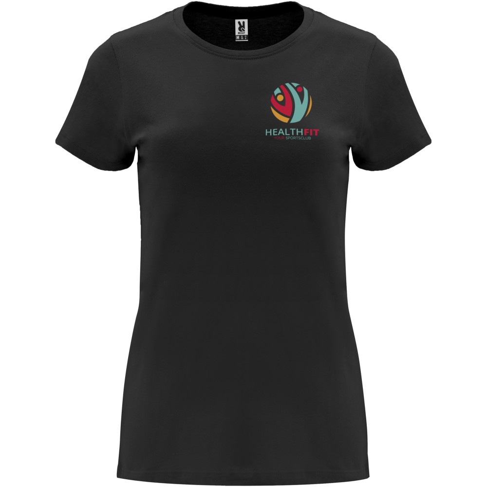 Fitted short-sleeve t-shirt for women. 1x1 ribbed crew neck. Reinforced covered seams in collar. Removable label. Single Jersey knit of 100% Cotton, 170 g/m2.