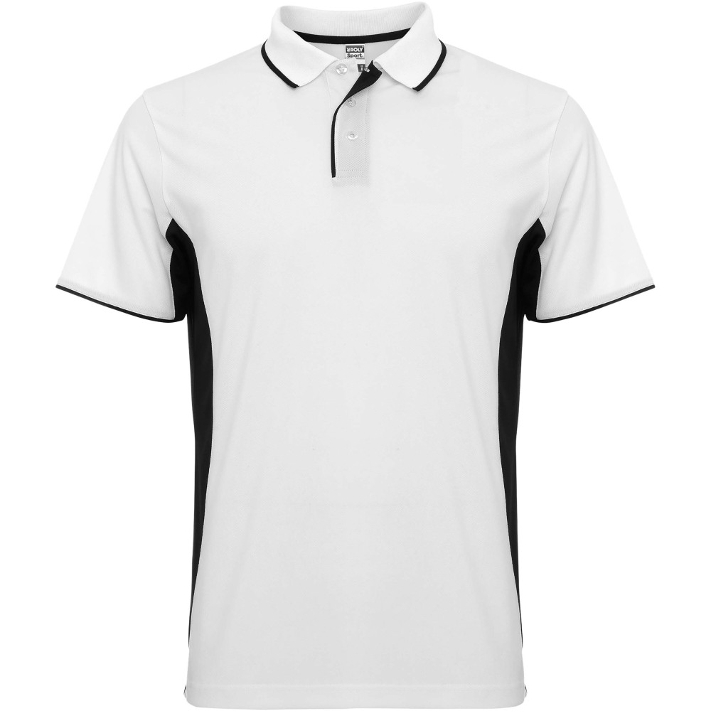 Two-colour combination. Collar with buttons, covered seams and placket in colour contrast. Easy-wash and easy-dry technical, breathable fabric. Removable label.