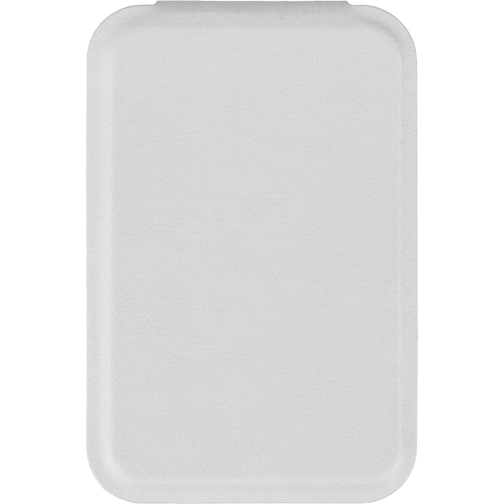 Glass mirror with folding recycled PU cover, designed to stand upright when opened. Pocket-sized at 70 x 11 cm, available in black, white, and red. Includes an embossed recycled logo. Packed in a paper bag.