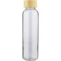 Glass drinking bottle (500 ml) with a frosted coated body and bamboo screw lid with PP inner core. Made from sodium calcium glass, suitable for cold drinks only. Individually packaged in a brown cardboard box.